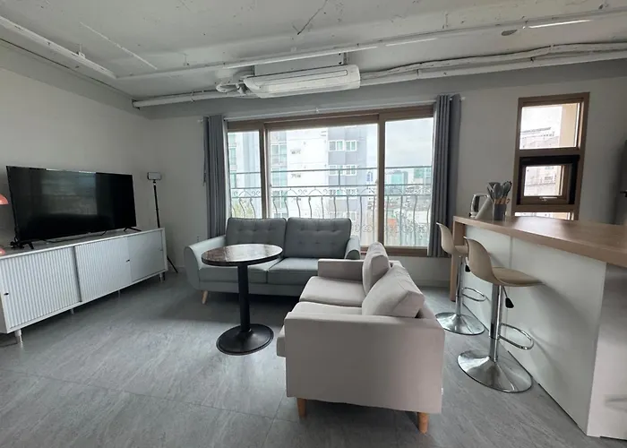 Les logements 601, Seongsu Station Jungnangcheon Cherry Blossom Road Han River Airport Bus dispose d'un balcon, d'un salon et d'une cuisine entièrement équipée, ainsi que de conforts tels qu'une climatisation. L'appartement comprend 1 chambre à coucher à coucher. Les clients sont invités à utiliser 1 salle de bains.